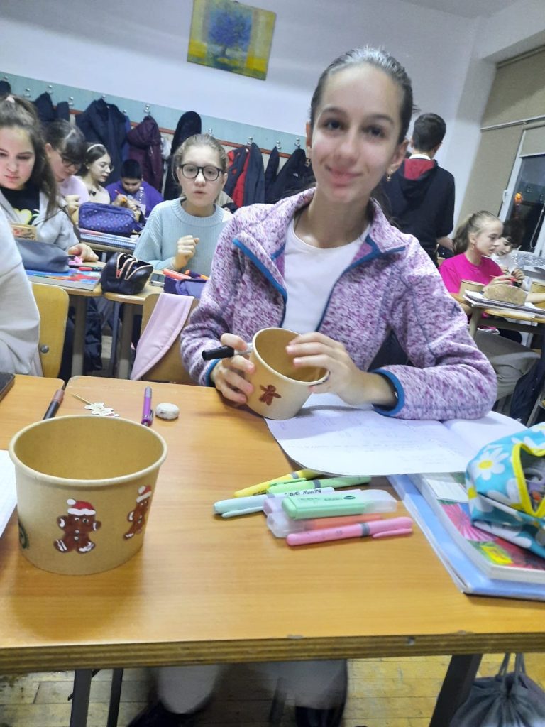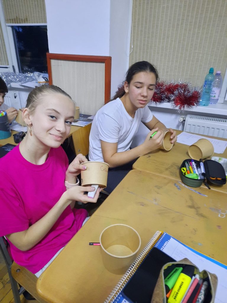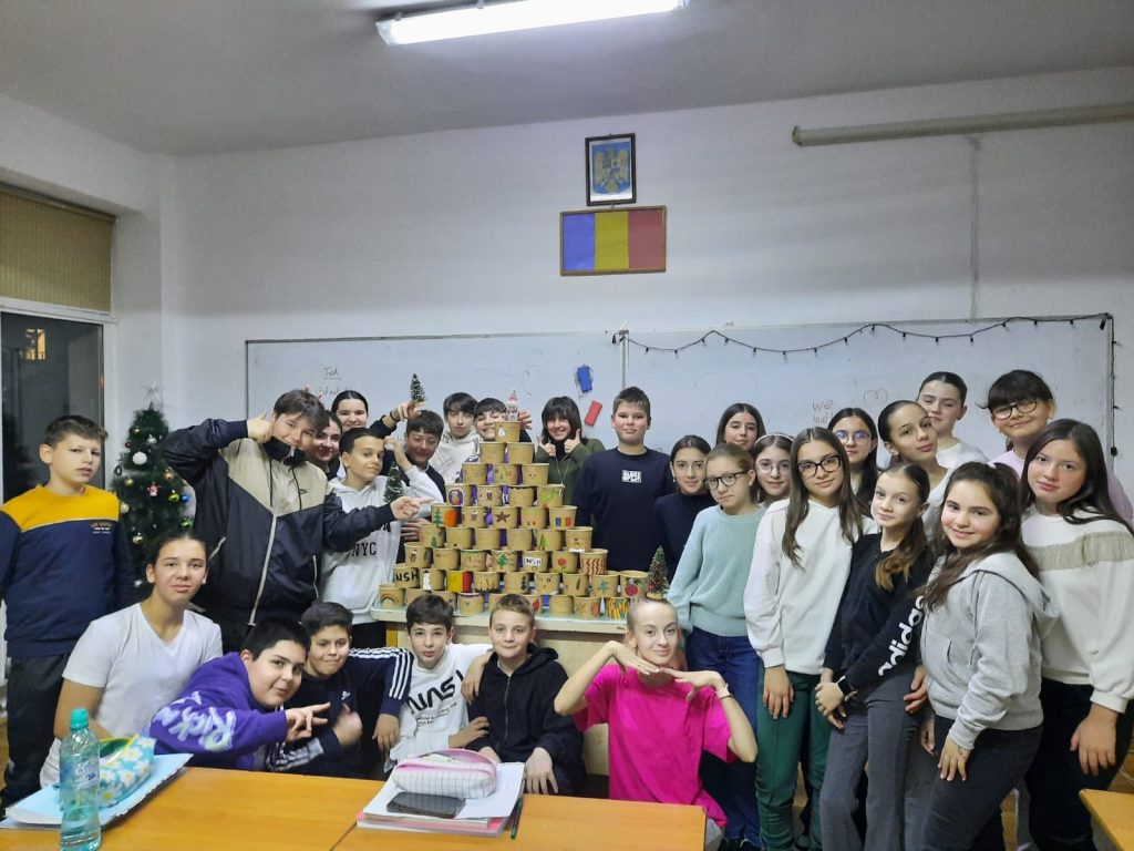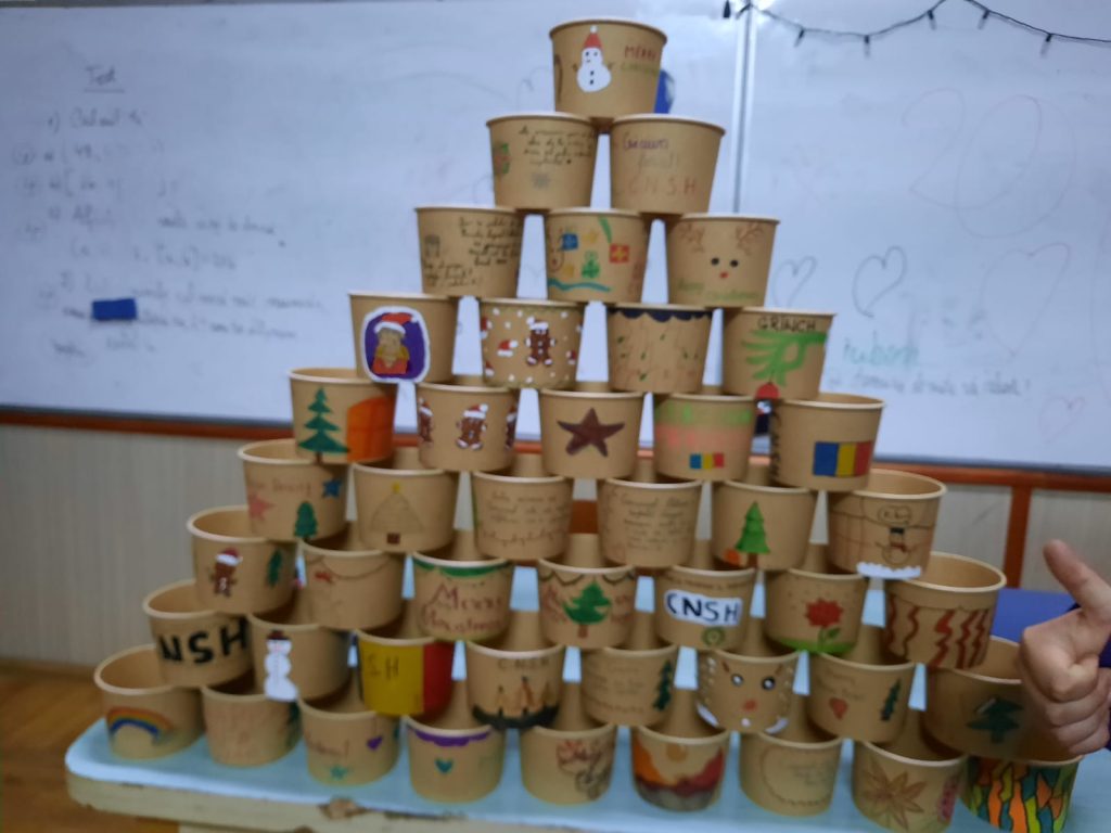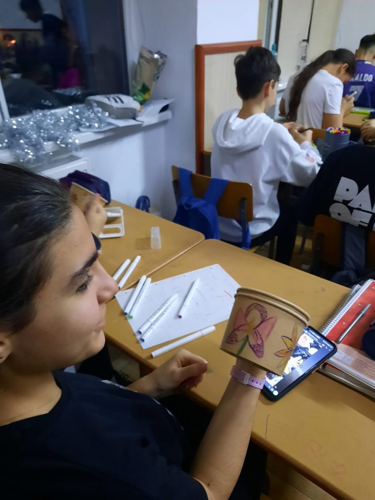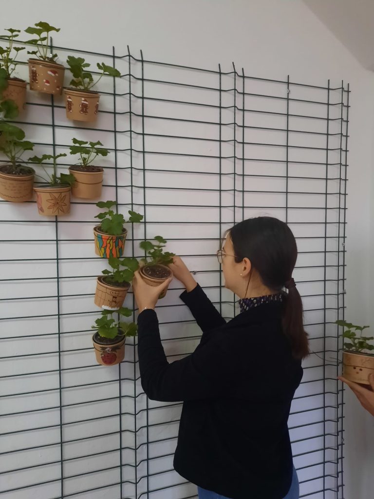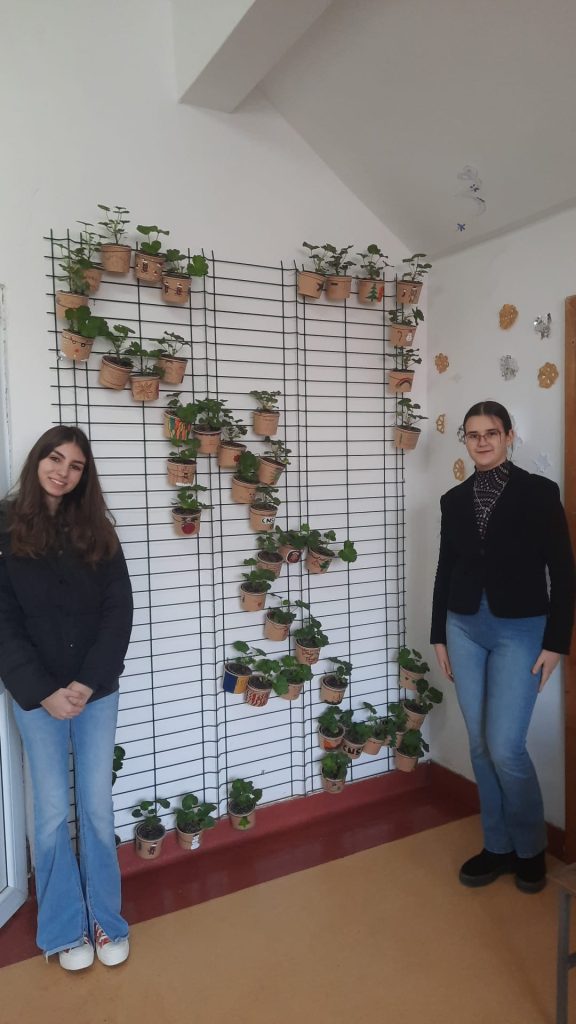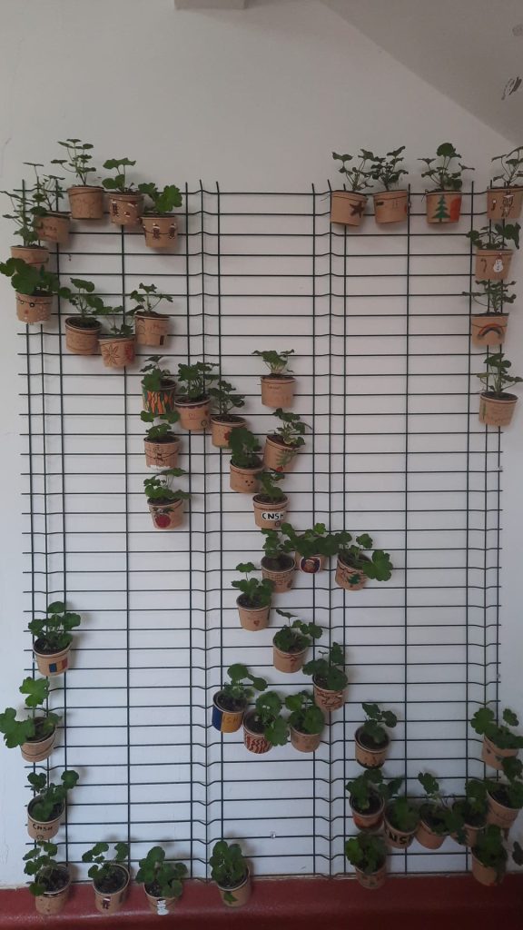 The students decorated the pots in a cheerful and pleasant way, using cards, personalizing them with positive messages, then moved the plants to the new pots and filled them with soil. They placed the pots in the shape of our school’s initials, CNSH, on the wall and will take care of the flowers throughout the school year, regularly watering, fertilizing and protecting them.